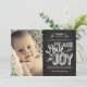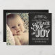 This trendy Christmas flat card design by The Spotted Olive features chalkboard typography with the words "Wishing You & Yours Peace, Love and Joy | Merry Christmas • Happy New Year" on a chalkboard background. The back features a stylish striped pattern. Easily personalise with your photo and text.