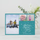 This Christmas / Holiday flat card has a faded blue stripes background with three spots for you to add your custom family photographs! In the middle bottom, there is a white typography design with lots of white stars. The text reads, "Merry Christmas & Happy New Year".