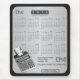 12 month, 2014 Calendar Mouse Pad - CPA, Certified Public Accountant - This mouse pad is perfect for accounting professionals home and office. The background in the far back is grey black. The centre background under the calendar is silver metal. Elements include a large silver and black desk calculator with engraved text and rubber calculator buttons for the year. Edit the company name, address, phone as you like or remove it all together!
