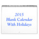 In large 2015 Blank Calendar With Holidays with blue wire you can find blue customisable text on front page and holidays and events in U.S. and Canada.