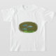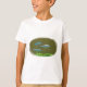 100% cotton so perfect for summer, It is a nicely designed t-shirt, the fabric is soft and the seams finished well, the body of the t shirt has no side seams. I bought a medium size for my two grandsons, aged 9 and 8 it will be slightly big on them but I would rather that than too small
