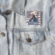2020 Election Bernie Sanders Support Political Button with American Flag Background for Democrats or Liberals or Humanitarians.