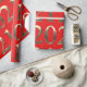 2021 Elegant Faux Golden Numbers Bright Red Wrapping Paper