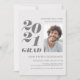 Designed for the 2021 Graduate, this invitation has trendy bold text with the class year alongside a photo template with the graduate's photo. A text template includes the graduates name, school and party details for celebrating this achievement. Replace the sample photo with your desired photo. Portrait orientation photos work best.