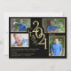 Class of 2021 four photo graduation invitation in black and accented in gold. Stylish black background is a popular choice to make your four of your own favourite graduate pictures stand out.
