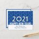 Modern, stylish HAPPY NEW YEAR 2021 Postcard, showing a design of snowflakes against a rich BLUE background. The year 2021 appears in large white text, together with HAPPY NEW YEAR. Underneath there is CUSTOMIZABLE text which you can personalise with your name or the name of your business. On the reverse, there is a placeholder message. ALL TEXT IS CUSTOMIZABLE so you can personalise this card with your details. Ideal to send to family, friends, corporate clients and customers. Other versions of this design are available in the NEW YEAR Collection by Berean Designs.