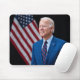 The photograph captures a moment in 2021 of President Joe Biden, image is now one of his official US Presidential photo. Sunlight streams through a window, casting a warm glow on the figure of an Biden standing confidently in the centre of the frame. His arms are crossed, a gesture that suggests both authority and a hint of casual ease. --- Mr. Biden is dressed impeccably in a blue suit, the crisp fabric contrasting sharply with the clean lines of his white shirt. A blue and red striped tie adds a touch of personality to the ensemble. --- A glimpse of patriotism is evident in the background. An American flag stands proudly on a pole to the man's left, its vibrant colours a bold contrast to the solid black behind Joe. A closer look reveals a painting hanging on the wall, adding a touch of personal flair to the professional atmosphere. --- President Biden is the focal point of the image. His short white hair frames a kind face, etched with the lines of a life well-lived. A warm smile plays on his lips, conveying a sense of confidence, wisdom, and perhaps a hint of amusement.