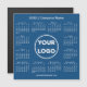Create your own modern 2022 calendar magnetic card featuring your company logo, name, and business website or contact info. Replace the sample logo, name, and text with your own in the sidebar. Surrounding your logo is a small white 2022 calendar on a blue background. Your logo can be a circle, square, or other shape. White or light coloured logos will work best with this design. If you want the background colour to show through your logo, upload a version of your logo with a transparent background. Makes a great promotional giveaway for customers. Includes an envelope for easy sending (or get it without one in the sidebar).