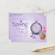 2022 Daylight Savings Time Change Reminder Postcard with Vintage Clock with Spring Bouquet of Flowers on a gradient background in shades of violet. On the Back personalise with your return address information and there is optional text to add more such at your newest promotion. Leave text box blank if not needed.