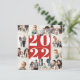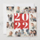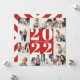 Stylish square photo card featuring a 12 photo collage with a hand-painted buffalo plaid check pattern in red. Add an additional photo and custom sentiment on the back.