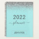 2022 Silver Teal Aqua Blue Glitter Monogram Girly Planner