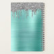 2022 Silver and Aqua Blue Teal Sparkle Glitter Monogram Name and Initial Spiral Notebook Wedding or Annual Planning Calendar. This makes the perfect sweet 16 birthday, wedding, bridal shower, anniversary, baby shower or bachelorette party gift for someone that loves glam luxury and chic styles.