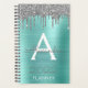 2022 Silver Teal Aqua Blue Glitter Monogram Planner