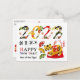 Large 2022 is decorated with mum and plum blossoms with symbolised pines and plum blossoms in the back. And Cute Tiger doll at the bottom of the card. The kanji in the middle means "Happy New Year" and it reads "Kinga Shin-nen" in Japanese. All of texts in the back are personalise. This is a digital illustration.