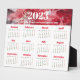 An 8" x 10" horizontal easel-back plaque features a year-at-a-glance calendar with the months in red and your business information over a watercolor floral print at the top.