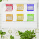 The 2023 calendar has each month, represented by unraveled bolts of fabric, with the month printed on top of the bolt, in colourful, complimentary colours for that particular month!