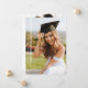 This modern graduation announcement features a full page photograph of the graduate with an abstract, modern tassel design accent. The graduate's name and school sit alongside the tassel design, allowing the photo to take centre stage. The back of the graduation announcement includes an additional photo and a place for a longer message, perfect for sharing the graduate's achievements or future plans.