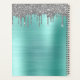 2023 Silver and Aqua Blue Teal Sparkle Glitter Monogram Name and Initial Spiral Notebook Wedding or Annual Planning Calendar. This makes the perfect sweet 16 birthday, wedding, bridal shower, anniversary, baby shower or bachelorette party gift for someone that loves glam luxury and chic styles.