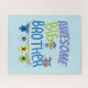 Big brother announcement art design to celebrate a new baby. Cute wagon with kids and green, yellow and blue hanging baby clothing laundry to delight your son. > Perfect for boy who's going to be a big brother. Motivational for any son promoted to big brother! > Personalise it! Add custom name, photo, or text.