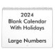 In 2024 Blank Calendar With Holidays with large numbers you can find changeable text on front page and holidays and events in U.S. and Canada.