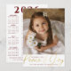CONTACT THE DESIGNER FOR UPDATED CALENDAR ON BACK. Beautiful photo Christmas season holiday greeting card with a 2024 calendar in your choice of colours. The card features one picture and the greeting WISHING YOU PEACE & JOY in a modern handwritten script typography in faux metallic gold on the front and a year-at-a-glance calendar and your custom text on the back in your choice of background, text and calendar colours (shown in burgundy text on white) that you can change in EDIT--note the greeting will remain gold or you can use the filter to change to silver. ASSISTANCE: For help with design modification or personalisation, colour change, resizing or transferring the design to another product, contact the designer BEFORE ORDERING via the Zazzle Chat MESSAGE tab below or email makeitaboutyoustore@gmail.com.