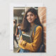 This classic, modern graduation party invitation features gold-coloured text on a black background. The word "Graduation" and the name of the graduate appear in casual modern handwriting font beneath a pair of gold mortar board caps. Customise the invitation with party details, and replace the sample image on the back with a photo of your grad.