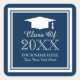 2024 graduation seals | Custom graduate stickers. Custom graduation stickers with graduate hat / cap. Stylish navy blue and white round favor stickers with customizable class of year etc. Cute icon with monogrammed name initials plus date. Personalized thank you stickers, favor label, envelope sealers / seals. Elegant script typography. Chic design / fancy square border design. Customizable background color. Suitable for high school, college, university etc. Also good for school reunion parties.