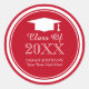 Custom graduation stickers with graduate hat / cap. Stylish red and white round favor stickers with customizable year 2024 etc. Cute icon with monogrammed name initials of grad plus date. Personalized thank you stickers, favor label, envelope sealers / seals. Elegant script typography. Chic design / fancy design. Customizable background color. Suitable for high school, college, university etc. Also good for school reunion parties.