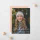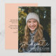 Modern Script Overlay 2024 Graduate Photo Announcement Card with room for additional details/information on the back. Back is pale peach with black text.