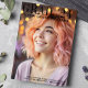 Modern Minimalist Graduation Magazine Cover Style Announcement Photo Card with one main photo on the front and two smaller photos on back. The back side has space for any additional details such as grad's accomplishments, future plans, or graduation ceremony/party details.