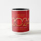 For a 2024 mug design, consider a sleek, minimalist aesthetic by featuring a matte finish in calming pastel colours. On one side, a geometric pattern symbolises growth and renewal, while the other side showcases an inspirational quote in elegant, modern typography. The handle could be ergonomically designed for comfort, and the interior could feature a pop of a contrasting colour for a fun surprise. This design blends functionality with contemporary style, perfect for daily use or as a thoughtful gift.