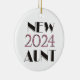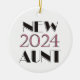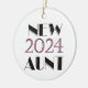 New Aunt 2024 dated ornament with pink and black text, a great gift for the new aunt of a baby born in 2024.