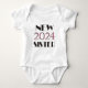 New Sister 2024 T-shirts in various styles, colours, and sizes with pink and black text design, great for the new big sister or baby sis!