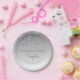 These chic, elegant graduation party paper plates feature a sparkly silver faux glitter drip border and silver grey ombre background. Personalise them with the graduate's name in grey handwriting script, with the word "Congratulations" above and the class year below in sans serif font. Ideal for high school or college graduation.