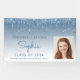 Celebrate her graduation from high school or college with this chic, glamourous photo banner, featuring a sparkly blue faux glitter drip border and blue ombre background. Easily replace the sample image with a photo of the graduate. Personalise it with her name in blue handwriting script, with the class year and school name below in sans serif font.