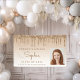 Celebrate her graduation from high school or college with this chic, glamourous photo banner, featuring a sparkly gold faux glitter drip border and gold ombre background. Easily replace the sample image with a photo of the graduate. Personalise it with her name in gold-coloured handwriting script, with the class year and school name below in sans serif font.