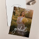 Add your favourite photo, graduation announcement, and party invitation on the reverse side by clicking the "Personalise" button. Featuring a full-frame vertical photo with the word "graduate" in bold script in gold foil.