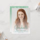 Trendy modern graduation announcement featuring a custom vertical photo. The word "Graduate" appears in green handwriting script overlay, with the graduate's name, school and year of graduation below in sans serif font. Easily replace the sample image with your own graduate's photo. A white gradient screen helps ensure the text pops. Add details about your graduate's accomplishments and future plans on the reverse, which features a green dripping faux glitter border on an ombre background.