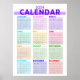2024 Rainbow Colourful Full Year Monthly Calendar Poster