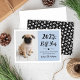 Send a smile this holiday season with a funny "Ruff Year" holiday card featuring your pet dog! This photo card features a photo of your pup adjacent to modern handwritten script text and custom text you can personalise with a custom holiday and new year message, your pet dog's name, and your last name / family. Simple minimalist typography design includes a light dusty blue background and cute black and white paw print accents.