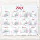 2024 Year At A Glance Red and White Calendar Mouse Pad