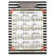 This 2024 year monthly calendar double-sided clipboard shows the days of the week for each month in classy, professional-looking black and gold. It's easy to read while also being trendy and cute. The design includes a black-and-white stripe background with flower embellishments in pink, red and yellow. There are hearts next to the cursive month names and a thin gold-coloured border. This is a pretty yearly calendar clipboard to help you conquer the new year. Always know what date it is and check the days of the week with this stylish calendar. The calendar appears on both sides for easy access. Use the templates to personalise the calendar with your name, business name, website or other information along the top and bottom (or simply delete the sample text to leave both spaces blank).