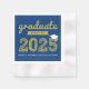 Bold Gold 'Graduate' Typography Sketch/Scribbles With A White Graduation Cap / Mortarboard Accent On A Dark Navy Blue Background, Class Of 2024/2025 Graduation Party Paper Napkin.