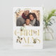 Gorgeous Merry Christmas photo card for the upcoming season with both elegance and modern styling. Add a favourite photo and name to pair with golden coloured text and white poinsettia star flowers.
