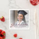 Modern graduation party napkins featuring a custom photo with text overlay. Easily replace the sample image with a photo of your graduate. The word "Graduate" appears in burgundy handwriting script, with the name, school, and year of graduation below in sans serif font. A white gradient overlay helps make the burgundy text pop. Ideal for high school or college graduation.