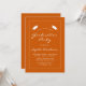 This classic, modern graduation party invitation features white text in a thin white rectangular border on a burnt orange background. The word "Graduation" and the name of the graduate appear in casual modern handwriting font beneath a pair of white mortar board caps. Customise the invitation with party details in sans serif font.