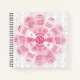 Keep track of the date in 2025 with this beautiful personalised calendar spiral notebook. This unique design forms the shape of a flower, with the calendar months in a circle on its petals. It combines a retro hippie-bohemian look with modern colours and a trendy marble border. The colours are all shades of pink, grey, and white. The design appears on front and back. Customise through the easy templates.