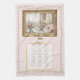 2025 Calendar towel tea towel - Framed scene of Paris from inside an apartment - decorative kitchen towel. Pink damask pattern background.  The text "Paris" can be changed to any personalised message you like.  Thanks for looking.