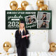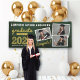 Retro Dark Green Chalkboard And Gold/White Modern Typography Sketch, Graduate Class of 2024/2025, Three Multi Photo Collage Graduation Banner.