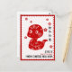 This simple yet modern Chinese Lunar New Year greeting card blends tradition with a contemporary touch. A red stamp-style border frames a cute snake illustration in a papercut design, symbolising the Year of the Snake. The soft pink-red background features a classic, understated auspicious cloud pattern, adding a subtle, elegant texture. The greeting includes the message "Happy Chinese New Year" in both Chinese calligraphy and English typography, sharing warm wishes with friends and family for a prosperous year ahead.